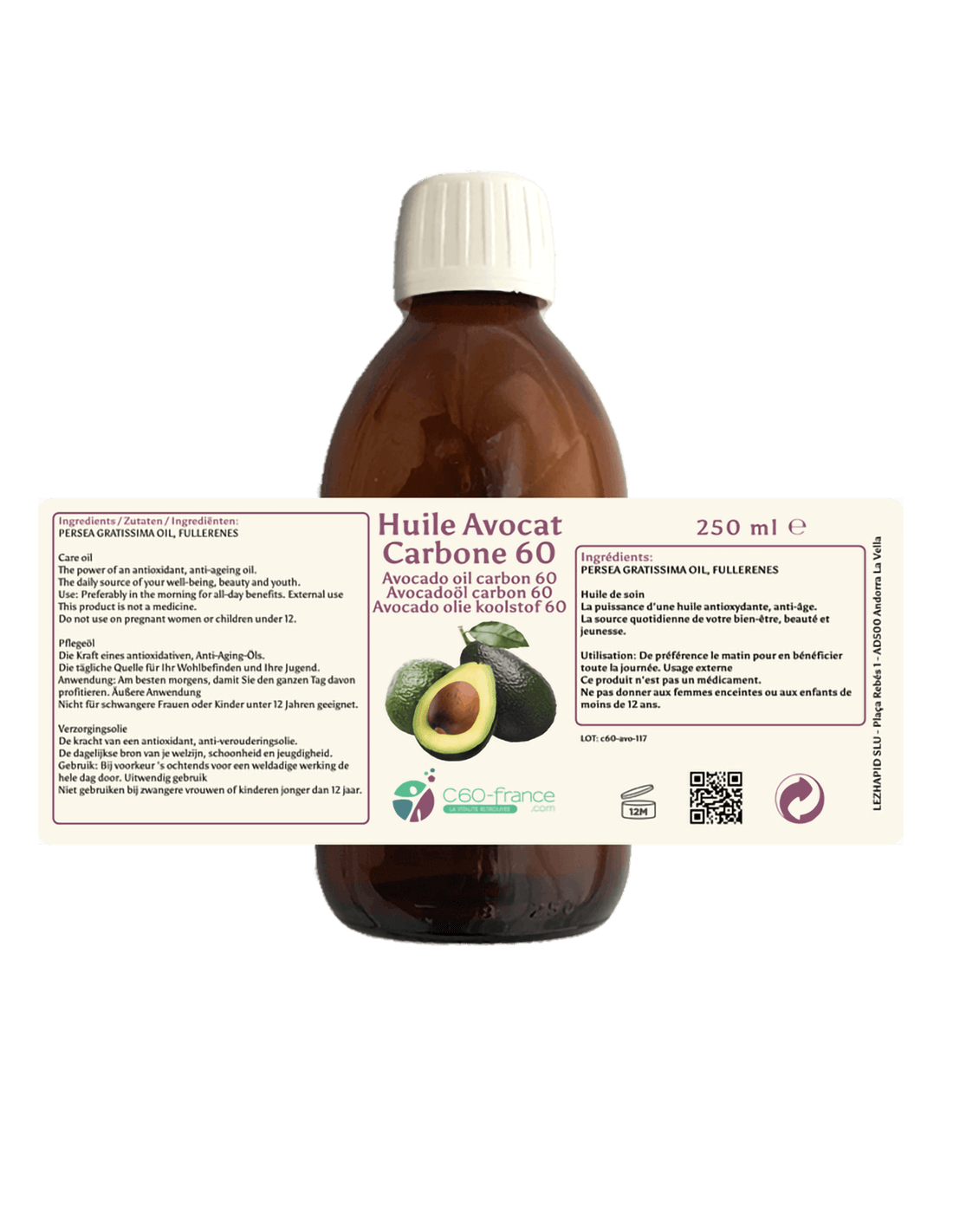 - 99,99% Fullerene C60 sublimowana monomolekuła zawieszona w ultra-czystym biologicznym oleju z awokado.